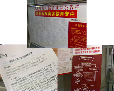 在招商證券公司的這家營(yíng)業(yè)部,記者注意到公司大門(mén)外的墻面上,張貼著不少關(guān)于創(chuàng)業(yè)板的知識(shí)介紹、開(kāi)戶流程等信息,而開(kāi)戶大廳里人頭攢動(dòng)。