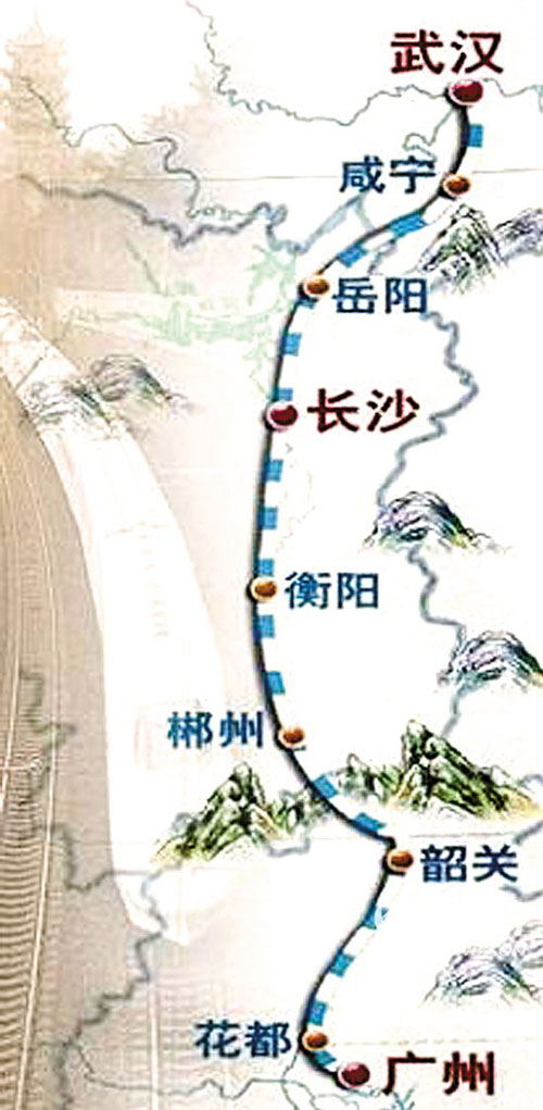 武廣客運專線起于楊春湖畔的新武漢站,經(jīng)咸寧、赤壁、岳陽、長沙、株洲、衡陽、郴州、韶關(guān)、花都,抵達(dá)番禺鐘村鎮(zhèn)的新廣州站,縱貫鄂、湘、粵三省。國內(nèi)幾乎所有大型鐵建單位都“搶”到了項目———大家都清楚,這場大會戰(zhàn)是一次絕好的練兵機會,從中獲得的經(jīng)驗可為日后更多、更龐大的高鐵工程提供參考。