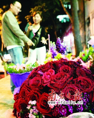 明天就是西方的情人節(jié)。記者昨日走訪市內(nèi)多家花店發(fā)現(xiàn),不少情侶都提前預(yù)定了鮮花,準(zhǔn)備在今日給愛侶一個(gè)意外驚喜,花店的生意比往常至少翻了一番,與此同時(shí),翻了不止一番的還有鮮花價(jià)格。