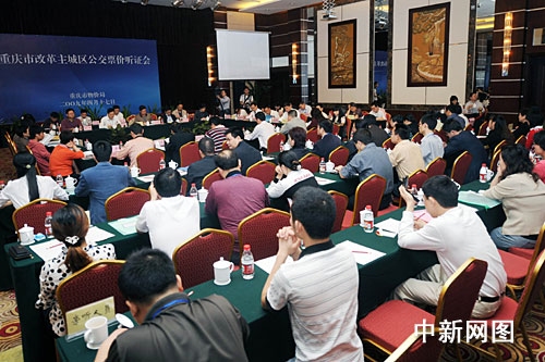 4月17日,重慶市舉行改革主城區(qū)公交票價聽證會,涉及主城800萬市民的出行問題,該市人大代表、市政協(xié)委員、消費(fèi)者和學(xué)生代表在聽證會上發(fā)表了意見。下午聽證會結(jié)束時,十余名重慶市民手舉反公交漲價T恤站在聽證會門口反對漲價,引起眾多參會代表關(guān)注。