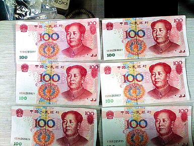 晚上姚先生夫婦回到家收賬,“我用驗(yàn)鈔機(jī)查收,發(fā)現(xiàn)6張百元鈔票都是假的。老人家對(duì)錢(qián)接觸得不是很多,根本沒(méi)意識(shí)到那是假鈔!碑(dāng)即姚先生就判斷是下午那伙人給的假錢(qián),因?yàn)檎惶,只有那幾筆生意,“他們肯定是一伙的,看老人一個(gè)人看店,便想得便宜!币ο壬Q(chēng),這些假鈔一般人根本看不出來(lái),外表和真鈔一模一樣,他用驗(yàn)鈔機(jī)才驗(yàn)出是假鈔。姚先生向記者展示收到的6張假鈔,其中竟然有兩張編號(hào)是一模一樣的,均為CE86269827,其它四張編號(hào)分別為CE86269828、CE86269821、TJ88285895、TJ88285897。