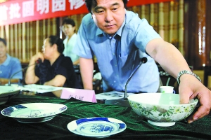 在修復完成的瓷器中,一件“五蝠捧壽”青花盤引起了國家文物局科技保護專家組組長王丹華的注意,這件破損瓷器上五只蝙蝠中的兩只是在修復過程中后期補繪上的,王丹華對此不贊同。