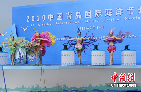 中新網7月24日電(記者田博川) 今日上午,由中國國家體育總局、國家旅游局、國家海洋局、海軍司令部以及北京奧運城市發(fā)展促進會和青島市政府聯合主辦的“2010中國青島國際海洋節(jié)”在奧帆中心隆重開幕。