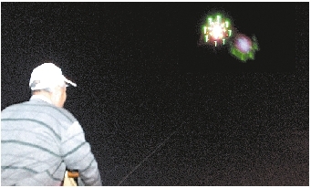 根據(jù)不明飛行物大概的方位,記者跟著“飛行物”方向一路尋找,發(fā)現(xiàn)不明飛行物就在火車頭體育場上空附近,體育場內(nèi)有人在放夜風箏。原來燈光是夜風箏上夜光設(shè)備不斷地發(fā)出不同顏色的光。
