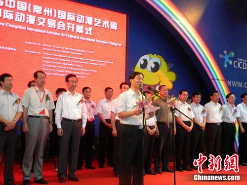 中新網(wǎng)常州8月27日電(記者 唐娟)由文化部和江蘇省政府共同主辦的2010第七屆中國(guó)(常州)國(guó)際動(dòng)漫藝術(shù)周暨國(guó)際動(dòng)漫交易會(huì),27日上午在江蘇常州國(guó)際會(huì)展中心拉開帷幕。據(jù)了解,本屆國(guó)際動(dòng)漫交易會(huì)共有20多個(gè)國(guó)家和地區(qū)的400多家動(dòng)漫相關(guān)企業(yè)聚集常州展示、交易、洽談合作。