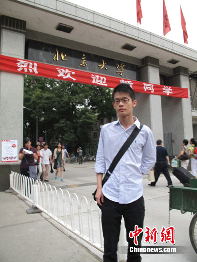 今天上午10時(shí)左右,身著藍(lán)條襯衫、深藍(lán)褲子,個(gè)子高挑的李戡終于出現(xiàn)了。有北大女生發(fā)出了驚呼:“看,他臉上還有小痘痘呢!”李戡的媽媽今天陪他過(guò)來(lái),她表示沒(méi)想到兒子今天上午被媒體全程跟隨——從報(bào)到、辦理飯卡到宿舍,再到校外,李戡就一直在不停地回答問(wèn)題。