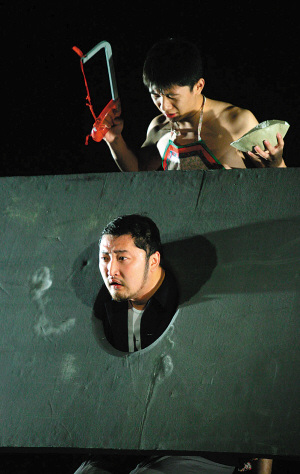 《回家》講述了一位老年癡呆癥患者想回家卻不能如愿的經(jīng)歷,不同于單線條敘述或故事性較強(qiáng)的商業(yè)話劇,該劇主角只是不斷夢囈,訴說著對自己的不滿、對過去的自責(zé)以及對當(dāng)下社會的種種困惑。全劇看似凌亂發(fā)散,實(shí)則容納了大量的信息,地溝油、三聚氰胺、畢業(yè)即失業(yè)、高房價(jià)、全球變暖、視頻裸聊、不再有一輩子的感情等一系列社會熱點(diǎn)問題都被搬上了舞臺……雖然主題嚴(yán)肅,但也不乏笑點(diǎn),演出過程中現(xiàn)場不時(shí)爆發(fā)出觀眾會心的笑聲。該劇的舞臺設(shè)計(jì)相當(dāng)“樸素”,在相對空曠的舞臺上,主演黃澄澄和趙雷棋并沒有通過化妝去表現(xiàn)角色的年齡感,而是在揣摩老者的心理特征和思維方式后,以表演呈現(xiàn)出蒼老感。其他年輕演員也表現(xiàn)不俗,尤其在結(jié)尾處,他們以大量夸張的肢體動作配以聲嘶力竭的控訴,掀起了全劇的最高潮。