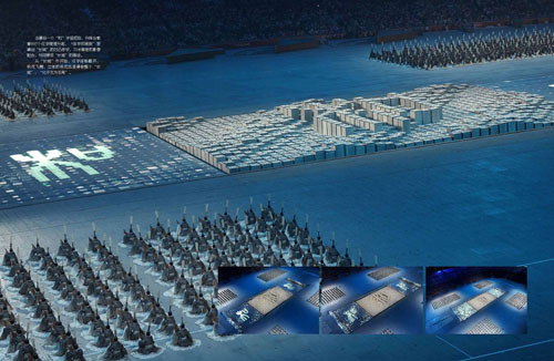 2008年北京奧運(yùn)會開幕式上,幾百名演員扮演的活字印刷字模通過不斷變幻,用大篆、小篆、楷書三種不同字體展現(xiàn)了同一個(gè)漢字——“和”。