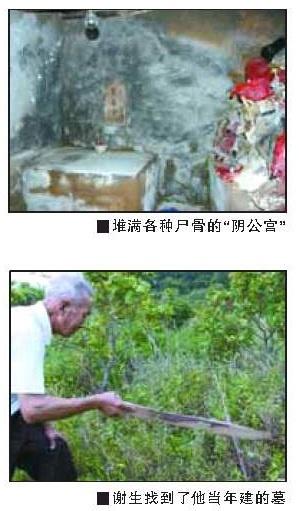 終于等來(lái)了曾做過(guò)“土公”的謝生。謝生今年76歲了,稍稍有些駝背,走路有些緩慢,但老人的頭腦非常清楚,眼中閃爍著令人敬畏的智慧的光芒。對(duì)記者提出的問(wèn)題,老人回答得非常準(zhǔn)確,不夸大事實(shí),如果不知道也不妄加猜測(cè)!拔抑话徇^(guò)不到10個(gè)‘黃金甕’,都搬到鷓鴣山了。另一位‘土公’謝興搬得多,得有100多個(gè),可惜他已經(jīng)去世了?吹降摹S金’很多都爛掉了,大部分只剩下了腿骨和手臂,少部分還存有一點(diǎn)點(diǎn)頭皮骨——腿骨和天靈蓋鈣質(zhì)比較多,所以一般保存得長(zhǎng)久一些。腿骨很短,也就一個(gè)半拳頭長(zhǎng)”,老人邊說(shuō)邊用兩個(gè)拳頭在自己的小腿前比畫著。