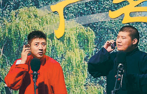 他們原創(chuàng)了一批新相聲,戲曲部分基本上都用流行歌曲代替,《新十點(diǎn)鐘開始》、《愛情宣言》、《我開始努力了》、《708090》、《尋找桃花源》、《高大夫熱線》等都深受觀眾喜愛。這些相聲,不僅穿插了很多傳統(tǒng)相聲的技藝,比如貫口兒、快板、“反正話兒”,還將最新最流行最前衛(wèi)的臺詞編了進(jìn)去。“雷到我了”、“礮孩子啊”、“我打醬油的”……網(wǎng)絡(luò)流行詞匯滿場飛;“打魔獸”、“打CS”等年輕人的娛樂生活不斷閃現(xiàn);甚至“三鹿奶粉”、“山寨手機(jī)”、“兩岸都通郵了”這些最新的時(shí)事也是他們相聲里的段子,難怪有人說他們的相聲可以當(dāng)新聞聽。