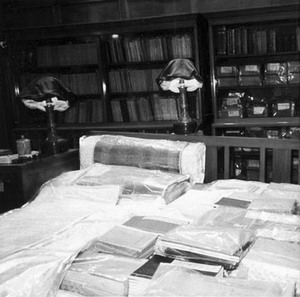 在東廂房的五間中,中間的一間是過廳,靠北側的兩間是通著的,這就是毛澤東的辦公室,與過廳相通?磕蟼鹊膬砷g不與過廳相通,也不在菊香書屋院內(nèi)開門,而是開在東廂房東面的夾道內(nèi)。這里是貯藏室,若去這貯藏室,需要走出菊香書屋這所院子。