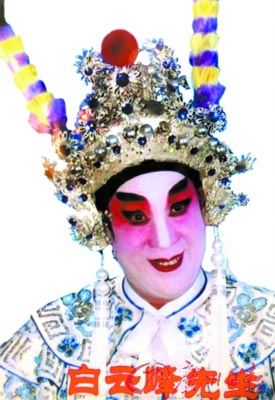 “文革”后,白云峰又操起了唱戲的老行當(dāng)。12年前,白云峰放棄了國營劇院的鐵飯碗,領(lǐng)著一班樂師和演員,組建了云峰粵劇藝術(shù)團!皯虬唷钡闹饕枧_,除了到鄉(xiāng)下慰老臨時搭臺,便是城里的茶樓飯館。白云峰操辦“戲班”盡心盡力,集劇團的老板、師傅、編劇、導(dǎo)演于一身。