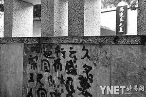 北京大學(xué)中文系的研究生小侯是在上周進(jìn)行實地文史考察時發(fā)現(xiàn)這一現(xiàn)象的,當(dāng)時他正籌劃為報紙撰寫有關(guān)北京旅游地理的文章。在他拍攝的照片里記錄了被涂在告知碑背后的綠色文字:“山從此地始,地到墳前終”。字跡凌亂,七扭八歪。