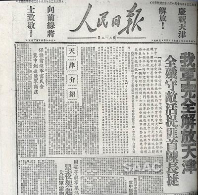 3.1949年1月16日,《人民日?qǐng)?bào)》關(guān)于天津解放的報(bào)道
