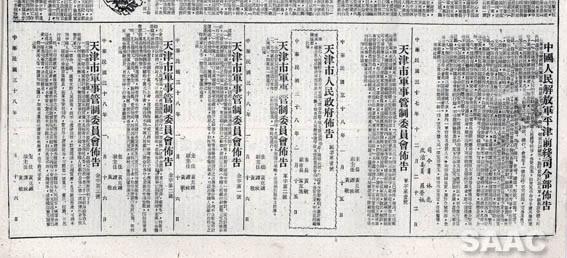 4. 1949年1月18日,《天津日?qǐng)?bào)》刊登的天津軍管會(huì)布告等