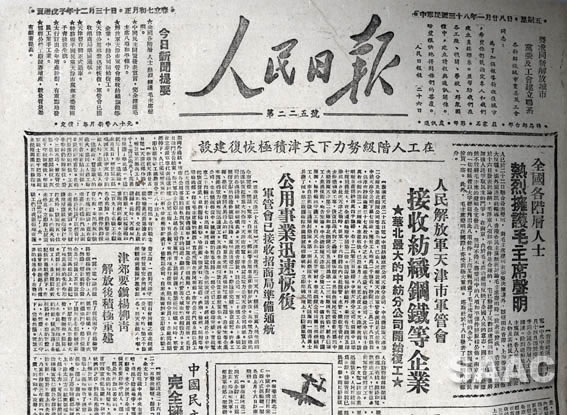 6. 1949年1月28日,《人民日?qǐng)?bào)》關(guān)于天津軍管會(huì)接收紡織鋼鐵等企業(yè)的報(bào)道