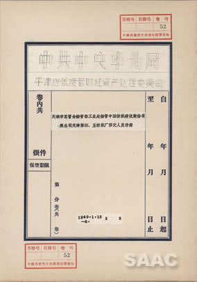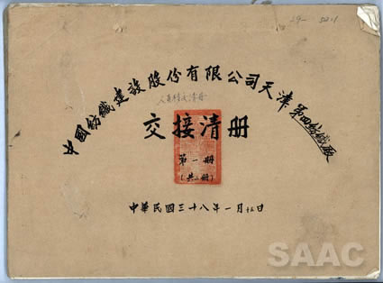 7.1949年1月—3月,天津市軍管會(huì)接管部工業(yè)處接管中國(guó)紡織建設(shè)股份有限公司天津第四、五紡織廠移交人員清冊(cè),圖為清冊(cè)卷皮