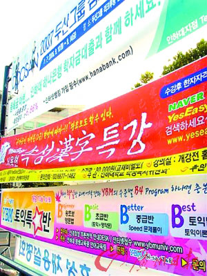 走在韓國的大街小巷,漢字隨處可見。地鐵站的名字、書名、名片、廣告牌、商標(biāo)……用漢字寫出的名字似乎增加了幾分學(xué)識和典雅。
