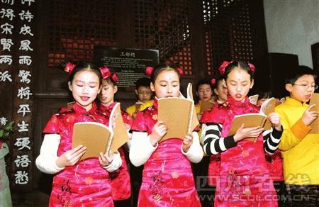 據(jù)介紹,自宋代以來,文人墨客們都會在每年春節(jié)初七“人日”這天,走進杜甫曾居住過的草堂,吟誦詩歌祭拜詩圣。今年杜甫草堂博物館特意在祭拜詩圣杜甫儀式中斷百年之后重新恢復,是對草堂“人日”活動的充實,更是對詩歌文化內(nèi)涵的進一步傳承和弘揚。