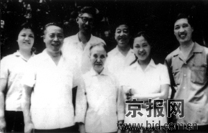 編輯部的崔道怡(左三)、王南寧(右二)和作者(右一)同作家柯巖(左一)、王愿堅(jiān)(右三)、冰心(前排中)在會(huì)議期間和張秉貴(左二)合影。