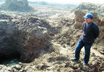 此時(shí),這兩處地方已經(jīng)沒有村民挖掘了,但還殘留著村民們挖銀元時(shí)留下的許多土坑,大大小小的坑一個(gè)連著一個(gè),有的坑甚至有三四米深,與周圍平整的土地形成了鮮明對(duì)比!白蛱烊齻(gè)小伙子還在挖,挖出來三只黃色的破碗,銀元已經(jīng)被找完了!”褚大爺說,1月18日前后發(fā)現(xiàn)了第一個(gè)出銀元的地方,年后又發(fā)現(xiàn)了第二個(gè)地方。
