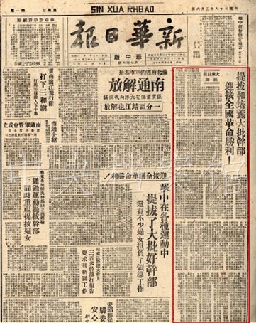 1.1949年2月6日,《新華日?qǐng)?bào)》轉(zhuǎn)載的社論:《提拔和培養(yǎng)大批干部迎接全國(guó)革命勝利》