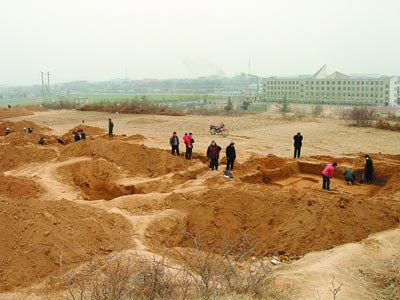 當(dāng)記者問這名考古人員附近共有多少古墓葬時,他回答說,在女郎山的南面不遠處,就是古章丘縣城,可能城里的人都看好這里的風(fēng)水,歷代的縣城居民,尤其是一些有錢有勢的人,死后都葬在這里,像清代章丘的望族高家。因此,這里的古墓葬是疊加的,古墓下面還有古墓,最早的可達戰(zhàn)國時期。他初步估計,這里的古墓葬有2000座,時代跨度很大,應(yīng)是濟南地區(qū)發(fā)現(xiàn)的最大古墓群。