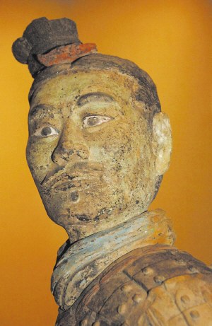 秦兵馬俑中唯一的綠臉俑自從發(fā)現(xiàn)的那一天起,就一直備受關(guān)注。自去年3月27日綠臉俑亮相陜西歷史博物館以來,參觀游客近百萬人,專家學(xué)者、普通觀眾紛紛提出各種疑問和看法,爭(zhēng)論至今還在繼續(xù)。