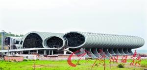 昨天,記者在廣東海上絲綢之路博物館看到,氣勢宏偉的“水晶宮”外墻裝上蔚藍(lán)色的玻璃,與大海、藍(lán)天相輝映,一朵朵白云在“水晶宮”上飄浮。在“水晶宮”內(nèi),上層的考古走廊及下層的觀光走廊已經(jīng)完工,觀光走廊上安裝上封閉的透明玻璃,已經(jīng)灌水8米深。