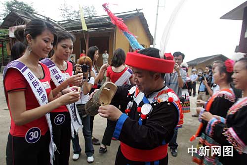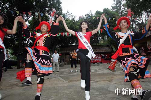 中新網(wǎng)4月26日電 (記者 應(yīng)妮)在廣東參加2009國(guó)際旅游小姐中國(guó)區(qū)總決賽的61位選手近日來(lái)到連南縣,走進(jìn)嶺南地區(qū)少數(shù)民族——瑤族生活的世界里,探尋和了解瑤族人時(shí)代生活的風(fēng)俗風(fēng)情。