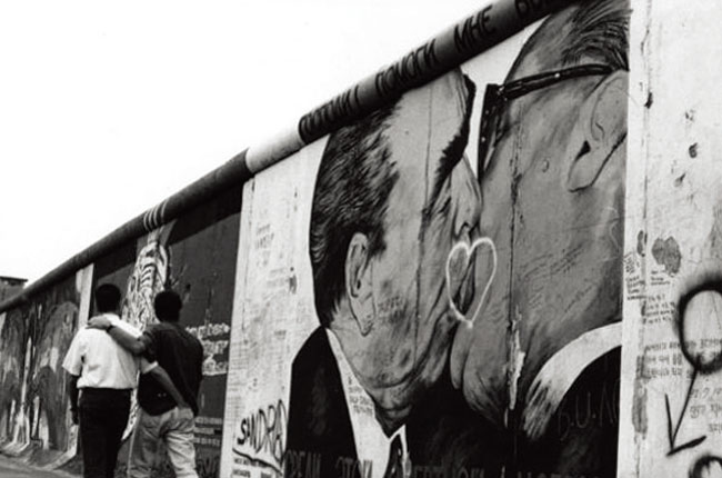 1961 年柏林墻建起后,上面逐漸出現(xiàn)了大量涂鴉作品。由俄羅斯藝術(shù)家德米特里·弗魯貝爾(DmitriVrubel)創(chuàng)作于20 年前的《兄弟之吻》,可算是其中最著名的!缎值苤恰访枥L的是前民主德國領(lǐng)導(dǎo)人埃里!ぐ杭{克(Erich Honecker)和前蘇聯(lián)領(lǐng)導(dǎo)人勃列日涅夫(Leonid Brezhnev)嘴唇對嘴唇的親吻,帶有很強(qiáng)的諷刺意味。多年來,這幅涂鴉已經(jīng)成為柏林著名的旅游景點。弗魯貝爾在得知成名作將消失后,感到很遺憾,不過他從畫作的歸屬方East Side 畫廊獲得了3000 歐元的補(bǔ)償,而且還被邀請將來重新繪制一幅《兄弟之吻》,“當(dāng)然不再是從政治的角度,而是與愛有關(guān)”。