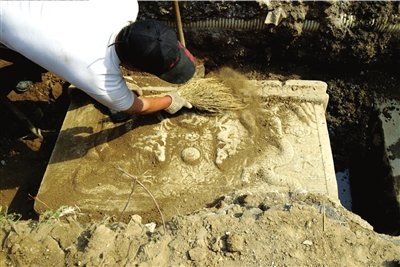 經(jīng)過村民們連續(xù)幾天的挖掘,昨天,昌平區(qū)舊縣村發(fā)現(xiàn)的石碑終于露出了“真容”,石碑分為寫有碑文的碑身和印有二龍戲珠圖案的碑座,碑文顯示該石碑為重建寺的碑記。昌平區(qū)文委和昌平文物所工作人員說,該碑的價(jià)值有待進(jìn)一步研究。
