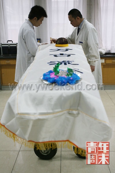 這是年輕的整容師一天中最普通的一單工作,只用時(shí)10分鐘。一天最少完成20具。對于張洋來說,早已習(xí)慣了這份工作!盎蛘哒f,我必須學(xué)會麻木!睆堁蟾嬖V記者。
