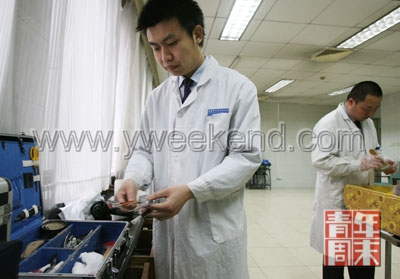 去年殯儀館招來一個(gè)漂亮的小姑娘,第一天培訓(xùn)結(jié)束后,老師傅問她有沒有男朋友。小姑娘說有。老師傅回頭沖著張洋喊,別惦記了,人家有。后來,張洋鼓足勇氣追過一陣,但沒追上。坐在記者對(duì)面,他有點(diǎn)不想提“失敗的原因”。其實(shí),這個(gè)男孩長(zhǎng)得很精神,只是臉上常常流露出一種不符合年輕人的老氣和憂郁!翱赡芪业男愿駟栴}吧,我像一60年代的人,不活份,不新潮!睆堁笳f不清自己是天生如此,還是這份工作造成的——至今,他都不習(xí)慣用Ipod,聽音樂還用CD機(jī)。