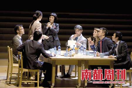 林奕華:5·12地震后,我跟張艾嘉聊天,提到我在內(nèi)地巡演時,看到許多二線城市都在“追”建筑、城市建設(shè)等,要把它弄得更像一個一線城市。大家都覺得城市好,因為可以達(dá)成許多事情。我們想要達(dá)成什么?那就是我們的欲望。當(dāng)欲望不容易實現(xiàn)時,就產(chǎn)生焦慮和不安全感。地震來了后,大家開始反省城市是否應(yīng)走得那么快。這是個很城市化的問題,而城市里上班族最多。其實,上班族在這部戲里也是一種比喻,不完全是針對上班族這群人,而是指現(xiàn)代人,探討城市人為什么會生活得不快樂。