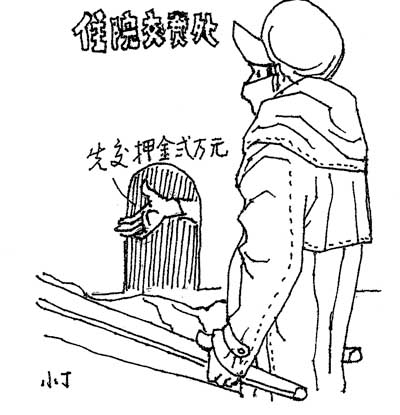 10天前,記者曾去病房探望丁聰。丁夫人沈峻女士說(shuō),他已昏迷不醒好幾天,眼睛也沒(méi)有睜開(kāi)過(guò)。我們交談時(shí),他忽然睜開(kāi)了眼睛,卻已沒(méi)有了過(guò)去熟悉的眼神,但看到他的眼角有一滴淚水流出。
