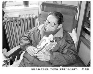 丁聰老人是26日11時在醫(yī)院飄然遠(yuǎn)行的。丁聰?shù)姆蛉松蚓吭陔娫捴谐领o地證實(shí)了這個消息:“謝謝你們的關(guān)心,但我們家人尊重丁先生的愿望,不設(shè)靈堂,不舉行一切追悼和紀(jì)念儀式。他只想安安靜靜地離開!