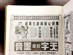 還是在同一張報紙上,當(dāng)天還刊登了一則以《慶祝父親節(jié)偉大貢獻(xiàn)》為大標(biāo)題的1/3版廣告。這是一家墨膏廠的廣告,副標(biāo)題為《敬請全國父親一致鼓勵子女晨起習(xí)字》,發(fā)動“父親節(jié)書法競賽活動”?梢,利用節(jié)日促銷商品的歷史由來已久。