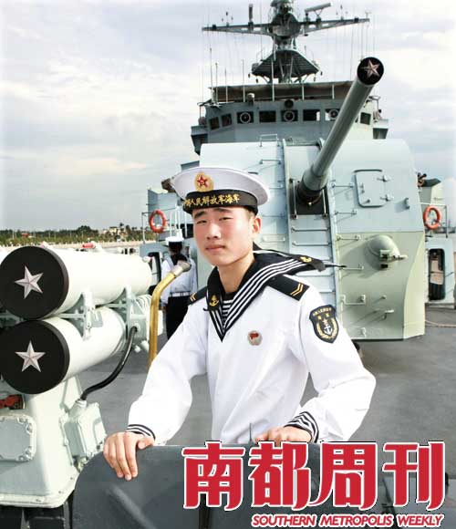 2007年12月入伍,海軍南海艦隊(duì)某艦艇部隊(duì)某艦槍炮測(cè)距部門(mén)上等兵。