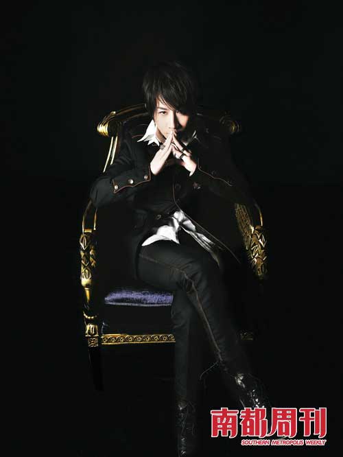 今年央視春晚上的8分鐘近景魔術(shù)表演,讓劉謙從一名普通魔術(shù)師一夜走紅,F(xiàn)在,他一身黑衣裝扮酷酷地坐在沙發(fā)上,就像一位帝王坐上了龍椅,事實(shí)上,那張沙發(fā)也有意設(shè)計(jì)得酷似“龍椅”造型。