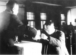 原來,溥儀上戶口的事引起了上級的重視,公安部派了一名宣傳干部到廠橋派出所,要補拍一張照片,為后人留下這意義深遠的一幕?汕赡翘烊f嘉熙有事不在,吳靜深只好拉上來串門的溥儉和溥儀一起補拍了一張照片。老人指著站在照片中間的那個人告訴記者:“這就是溥儉!