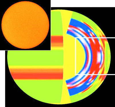 NSO科學(xué)家Frank Hill表示,這便是在太陽(yáng)上發(fā)生的一切,只不過(guò)略有不同罷了。利用一種被稱為日震學(xué)的技術(shù),他和同事Rachel Howe從上世紀(jì)90年代中期開始對(duì)太陽(yáng)射流進(jìn)行跟蹤研究。這種方法與地震學(xué)家用于探測(cè)和評(píng)估地震的方法類似,并且由于太陽(yáng)射流發(fā)生在太陽(yáng)表面下幾千公里,因此日震學(xué)的應(yīng)用便顯得尤為重要。Hill和Howe發(fā)現(xiàn),與正常情況所需的11年相比,形成于1996年的太陽(yáng)射流運(yùn)動(dòng)得更為緩慢——用了13年才到達(dá)了臨界的南北緯22度。