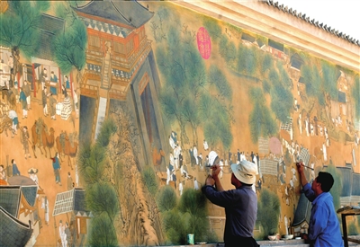4農(nóng)民畫(huà)家繪成壁畫(huà)清明上河圖