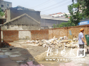 在院落里,用新磚圍出一塊空地,里面堆放著各種建筑垃圾。一位社區(qū)工作者正指揮著垃圾車進進出出。社工告訴記者,選擇在這里倒垃圾也是無奈之舉!耙驗橹車簧偈菍W區(qū)房,加上地段好,買房裝修的市民特別多!鄙绻ふf,這些建筑垃圾被隨意丟棄,周圍市民反映非常大。“我們請來了保潔隊定期清理?墒,新街口寸土寸金,根本沒有地方堆放!