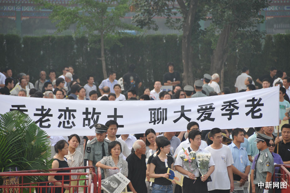 中新網(wǎng)7月19日電(張中江) 19日上午,北京大學(xué)資深教授季羨林先生的遺體告別儀式在八寶山舉行,數(shù)千民眾赴現(xiàn)場(chǎng)送別季老。