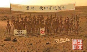 網(wǎng)友繼續(xù)為原本無(wú)意義的水帖“增加”意義,帶有“賈君鵬”字樣的PS圖片相繼誕生,有網(wǎng)友在易中天《百家講壇》的照片下方寫,“大家好,我是賈君鵬的班主任”,也有網(wǎng)友在一群外星人舉旗的照片中PS上“賈君鵬你媽媽喊你回家吃飯”的標(biāo)識(shí),或者讓這幾個(gè)字出現(xiàn)在《新聞聯(lián)播》的字幕中,賈君鵬成了無(wú)所不在的符號(hào),終極的指向是一場(chǎng)集體無(wú)意識(shí)的搞笑和樂(lè)子。
