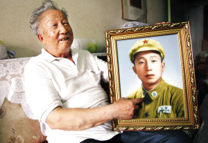 記者在康老家的臥室墻上看到一幅彩照,照片里年輕的康彭壽身著軍裝,那是他進北平后的第一張照片,至今已珍藏了整整六十年。