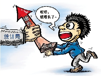 詞匯釋義:近來(lái)的新詞中,“被”字輩搶盡風(fēng)頭,前有“被自殺”,后有“被就業(yè)”,如今的掌門人是“被增長(zhǎng)”。說的是國(guó)家統(tǒng)計(jì)局近日公布的一份統(tǒng)計(jì)顯示,上半年全國(guó)城鎮(zhèn)居民人均可支配收入實(shí)際增長(zhǎng)11.2%,農(nóng)村居民增長(zhǎng)8.1%,遠(yuǎn)超上半年7.1%的經(jīng)濟(jì)增速。從前大家都喊工資收入趕不上GDP增速,如今在數(shù)據(jù)上倒是真實(shí)現(xiàn)了,而且還是在全球金融危機(jī)的背景下。善于質(zhì)疑的網(wǎng)友們,更懂得拿數(shù)據(jù)說話,于是紛紛在網(wǎng)絡(luò)上曬工資。結(jié)果顯示,我們的工資根本沒怎么漲,我們的收入原來(lái)是“被增長(zhǎng)”了,亦即口袋沒見鼓起來(lái),卻硬要被人說漲工資了。此后,許多媒體紛紛表示,相信國(guó)家統(tǒng)計(jì)局,但不能保證下面報(bào)上來(lái)的數(shù)據(jù)是否造假。本刊之前還就“被就業(yè)”談過數(shù)據(jù)造假的誘因以及惡劣后果,所以不再詳細(xì)討論,但要強(qiáng)調(diào)一句話,造假數(shù)據(jù)猛于三鹿奶粉。
