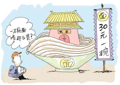 在價格管制已很寬松的今天,拿個面價來說事,總有點小題大作之嫌。不過因為這碗面是在故宮里的,而且又被稱為“有文化”的面,所以還值得說兩句。