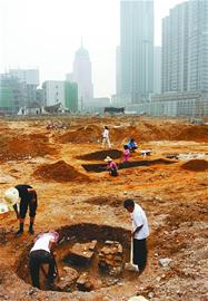 記者在考古發(fā)掘開始后不久進(jìn)入現(xiàn)場,看到了已經(jīng)清理出來的20多座古墓。據(jù)正在現(xiàn)場的市考古研究所技術(shù)人員郭俊峰介紹,這個區(qū)域已經(jīng)探知的古墓約40座,已 發(fā)掘的有20多座,上到漢唐,下到宋元,時間跨度很大,這說明此區(qū)域是具有相當(dāng)長歷史傳承的墓地。另外發(fā)現(xiàn)的10座古窯遺址,也正在清理和研究中。